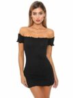 Longra Damen Sommer Minikleid Schulterfrei Kleid Schwarzes Kleid Rundhals Long Tank Top Damen Kurzarm Stretch Figurbetontes Etuikleid Bleistiftkleid Kurz Mini Kleid Longshirt Partykleid
