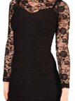 jowiha® Sexy Mini Mieder Stretch Kleid mit Spitze und Langen Ärmeln