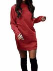 iShine Bodycon Kleid Damen Langarmshirt Basic Kleid Knielang Etuikleid mit Stretch Partykleid Minikleid