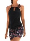 Longra Damen Bohemian Kleider Blumendruck Beachwear Strandkleid Schulterfrei Knielang Sommerkleid im Ethno-Style Frauen Bademode Spaghetti Trägerkleid Strand Partykleid Neckholder Minikleid