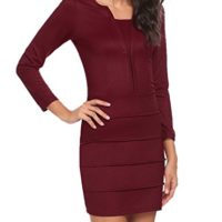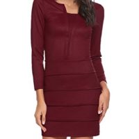 Damen Bodycon Kleid Langarm Etuikleid Elegantes Minikleid Bleistiftkleid Partykleid