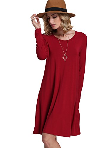 Title DIDK Damen Casual Kleider Lose Elegant Minikleider Einfarbig Tunika Langarm Rundhals Kleid