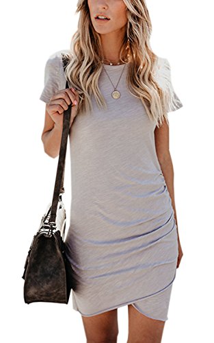 ECOWISH Damen Enges Kleid Sommerkleid Rundhals Kurzarm Kleid Bodycon Unregelmäßig Minikleid