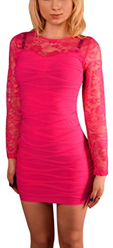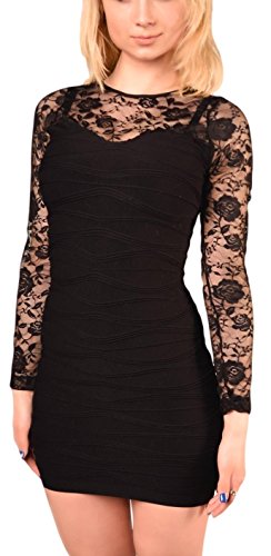 jowiha® Sexy Mini Mieder Stretch Kleid mit Spitze und Langen Ärmeln