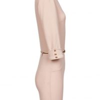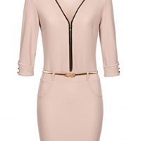 - Merkmale: tiefer V-Auschnitt mit Reissverschluss, taillierter Schnitt mit Taillengürtel, Zierknöpfe am Armabschluß