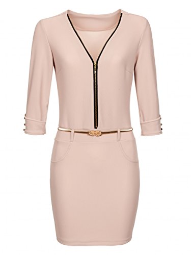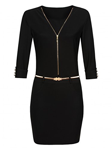 Laeticia Dreams Damen Minikleid mit Reißverschluss Zipper Gürtel S M L XL