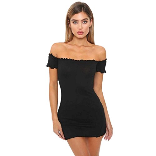 Title Longra Damen Sommer Minikleid Schulterfrei Kleid Schwarzes Kleid Rundhals Long Tank Top Damen Kurzarm Stretch Figurbetontes Etuikleid Bleistiftkleid Kurz Mini Kleid Longshirt Partykleid