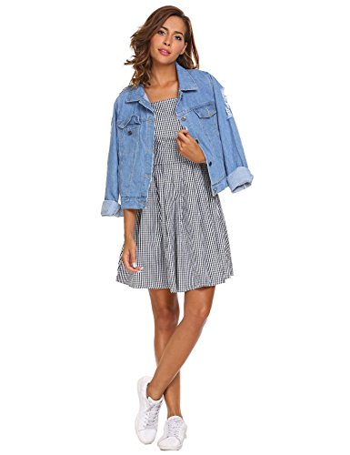 Bitte lesen Sie die Details der Größeninformationen vor dem Kauf. Vergleichen Sie es mit Ihrer ähnlichen Kleidung, um die Größe richtig zu garantieren.- Das kariertes Kleid mit Schleifeträgern für Frauen (kariert, Ärmellos, Rückenausschnitt und Reißverschluss hinten zu schließen) aus Baumwolle und elastischem Material, mit ganzflächigem kleinem Karo-Muster
