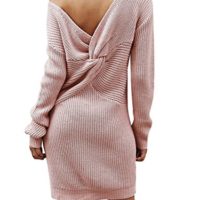 Feature Unifarbe Strickkleider, One Shoulder, Rückenfrei, Langarm