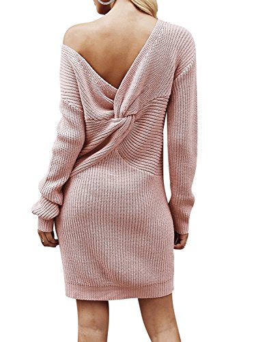 - Unifarbe Strickkleider, One Shoulder, Rückenfrei, Langarm