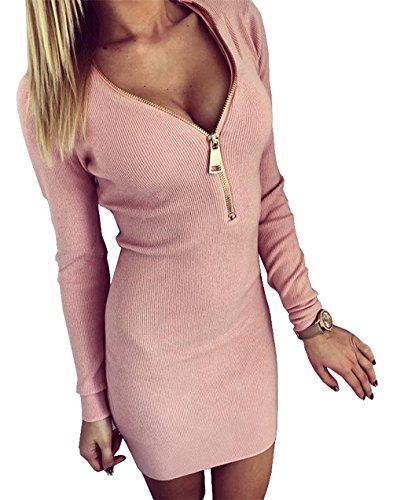 Minetom Damen Herbst Frühling V-Ausschnitt Kleid Slim Fit Partykleid Langarm Minikleid