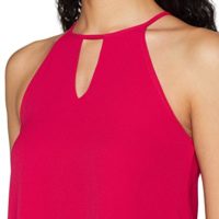 – schicker Rückenausschnitt, der mit Knopf und Schlinge geschlossen wird