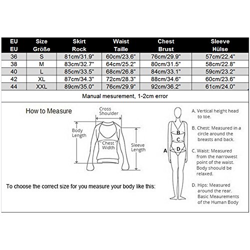 Größe XL: Rock(87cm/34.3″“), Taille(72cm/28.3″“), Brust(88cm/34.6″“), Hülse(60cm/23.6″“)