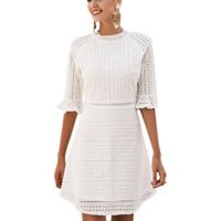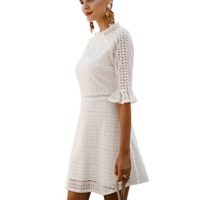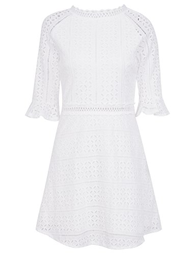Title Terryfy Damen Kleid Sommer Kurz Elegant Schickes Trompetenärmel Spitze Minikleid Strand
