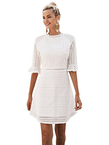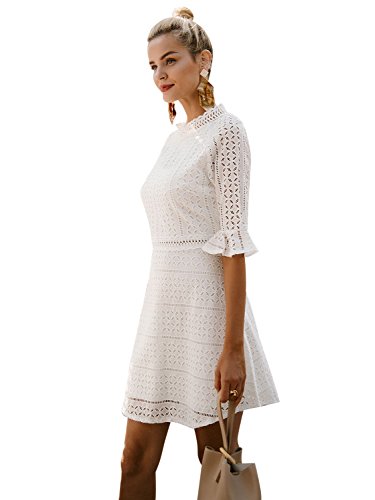 Terryfy Damen Kleid Sommer Kurz Elegant Schickes Trompetenärmel Spitze Minikleid Strand