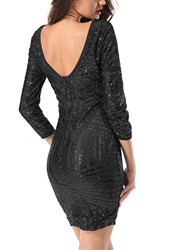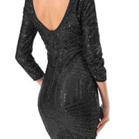 Title Yidarton Damen Paillettenkleid Langarm Rundhals Backless Partykleid Ballkleid Abend Minikleid